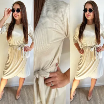 Könnyed, bordázott pamut anyagból készült őszi kisruha.