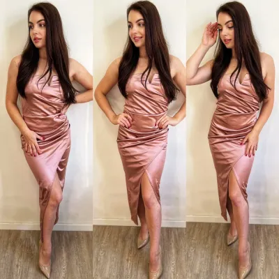 Gyönyörű pántnélküli szatén ruha csodás színben. Elöl csavart díszítéssel, mellbetétekkel, hátán gumírozással, ezáltal biztos tartást nyújt. Megfelelő választás lehet esküvőre, bálokba, de akár még színházba is. Egy kis blézerrel és magassarkúval kiegészítve csodás összhatás érhető el.