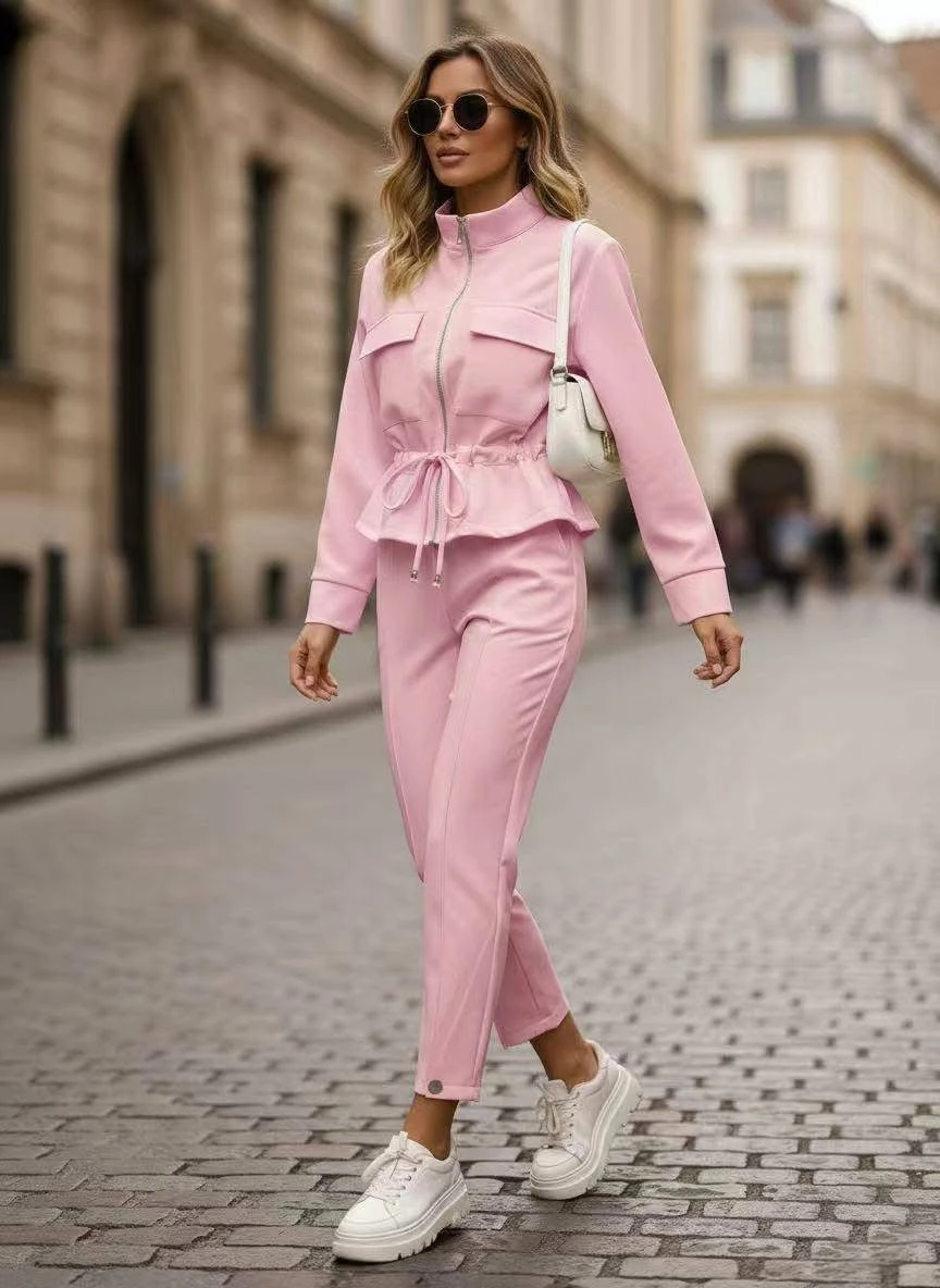 Melegítő együttes. Derékban állítható felső, pihe puha anyag.