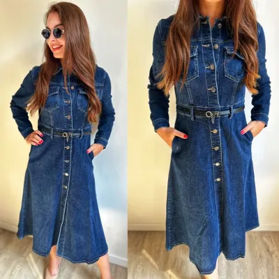 Rugalmas anyagból.Gombolható, ezáltal könnyebb fel-le venni, dereka a hozzá tartozó övvel karcsúsítható.