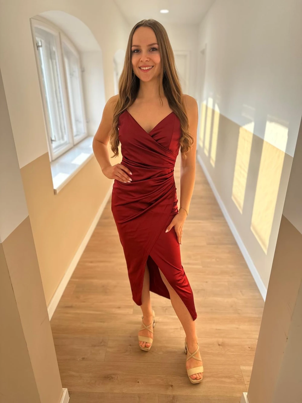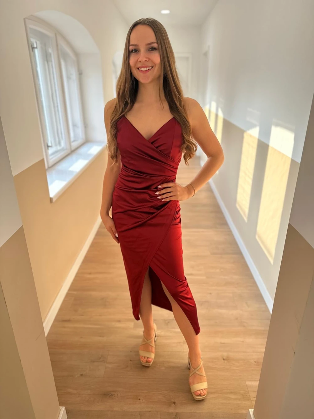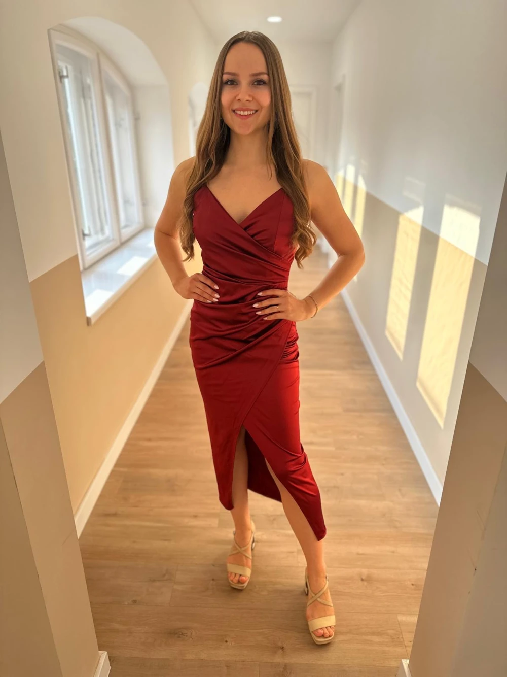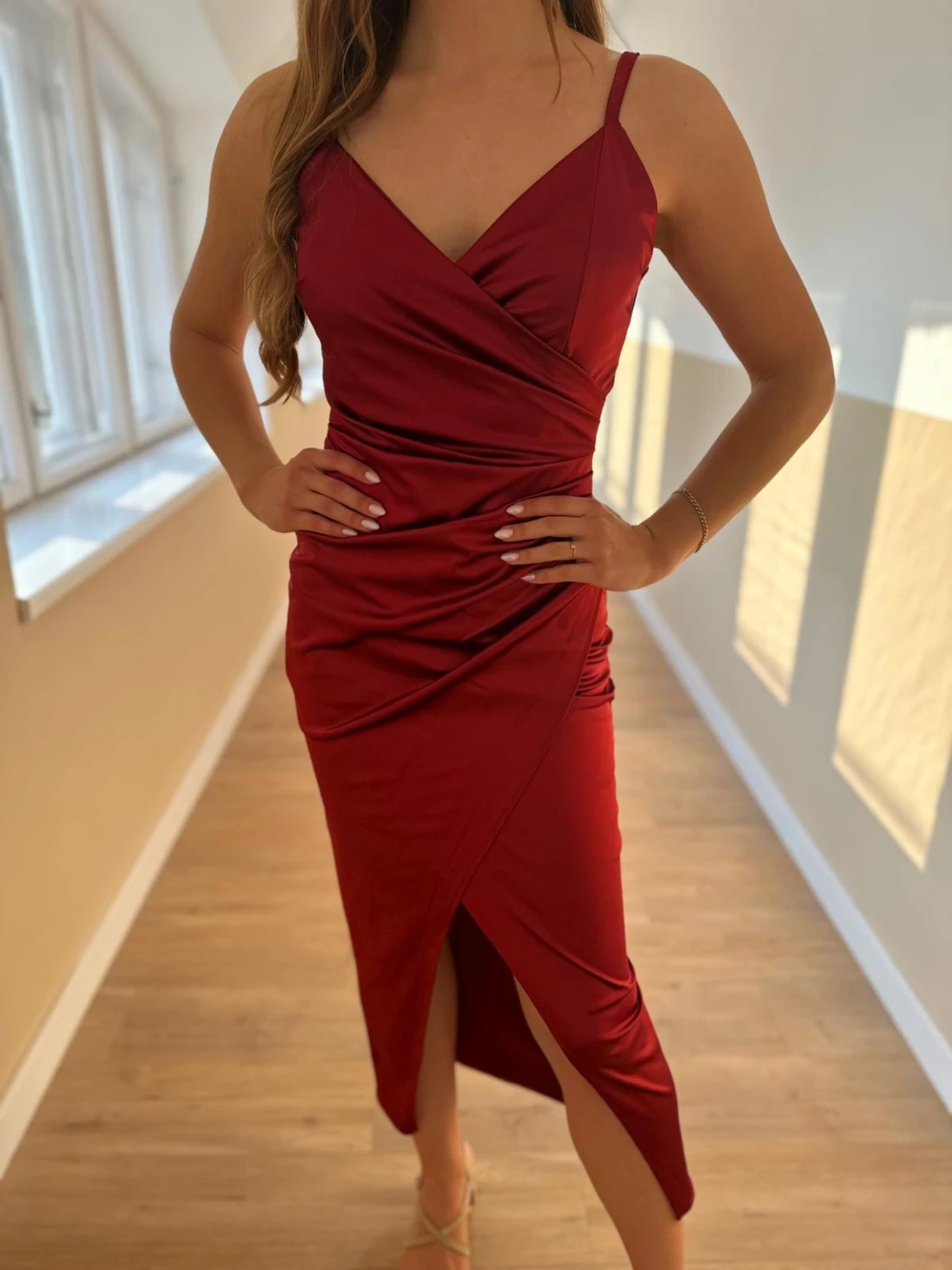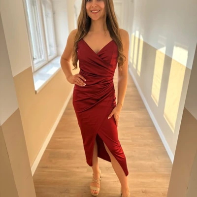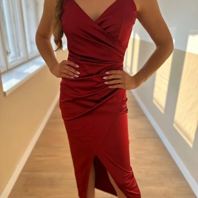 Gyönyörű bordó szatén ruha