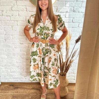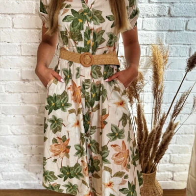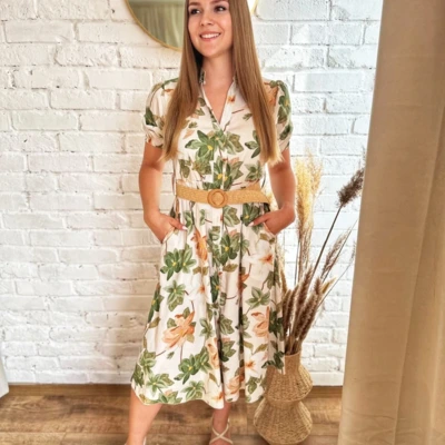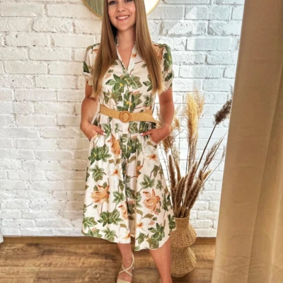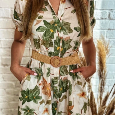 - Virágmintás ruha lenge anyagból