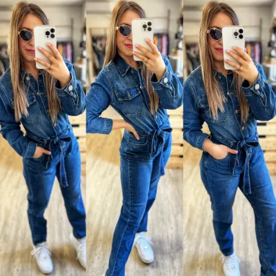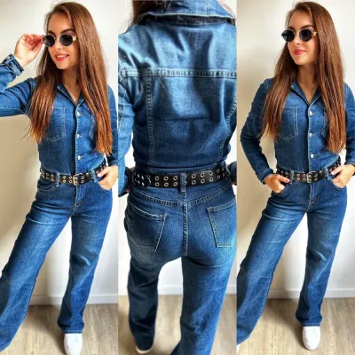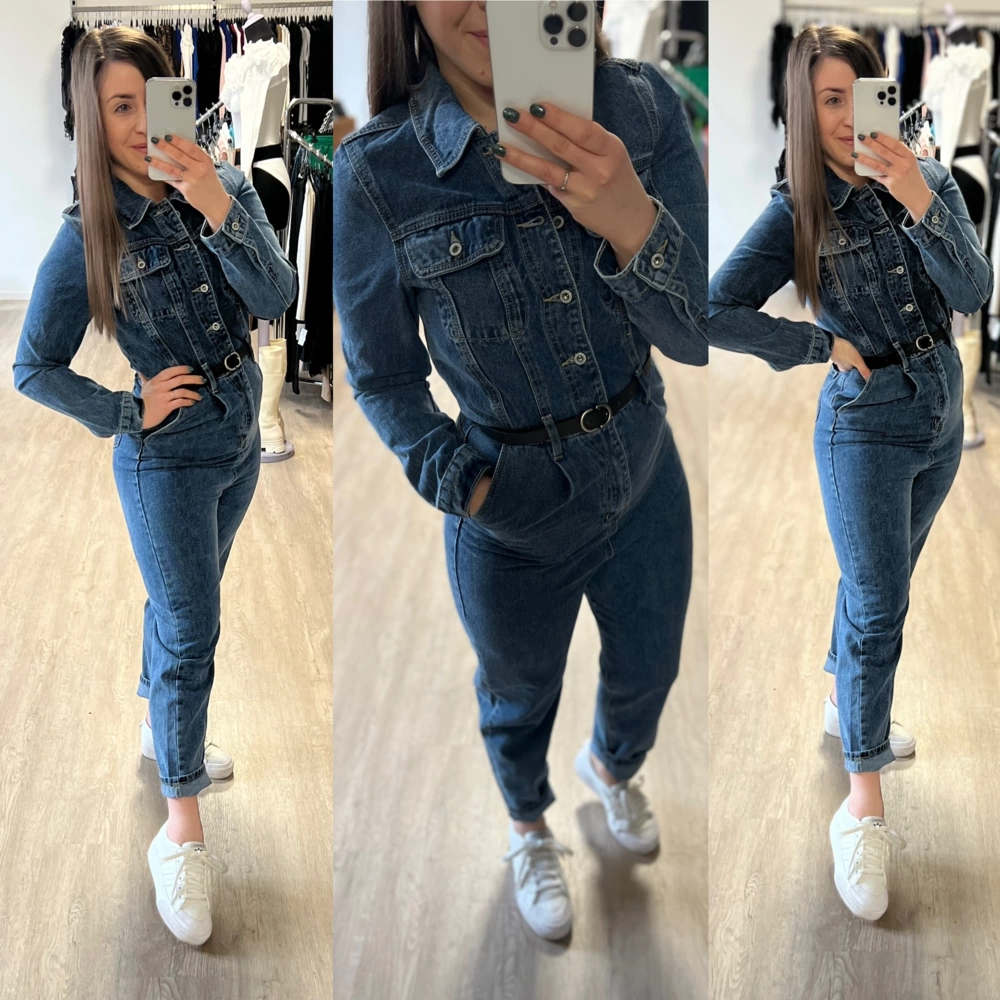 Karcsúsított kialakítású, classic színű overál zsebekkel.