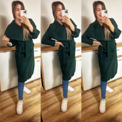 Filc anyagból készült kabát,derekát hangsúlyozó kötővel.