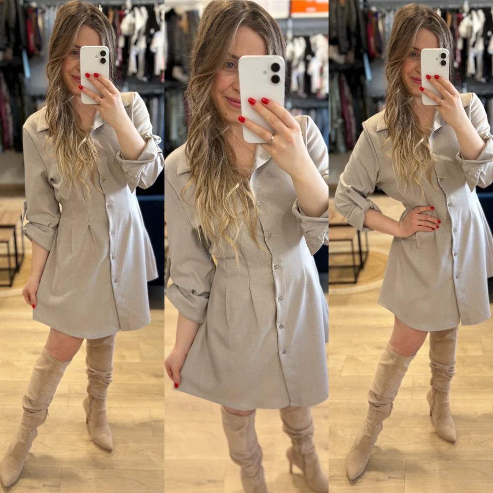 Tavaszi ruha/tunika , felhajtható ujj résszel, derékban húzott.