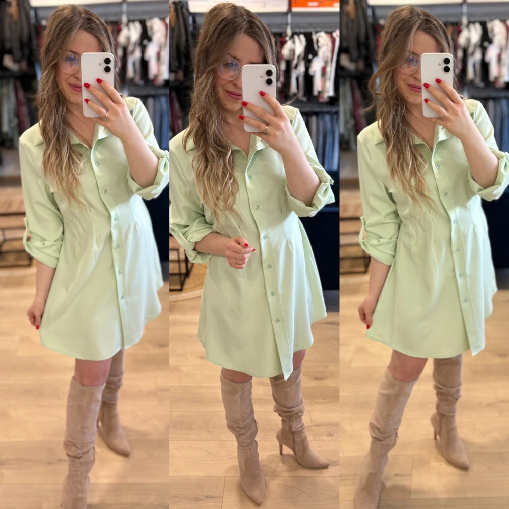 Tavaszi ruha/tunika , felhajtható ujj résszel, derékban húzott.