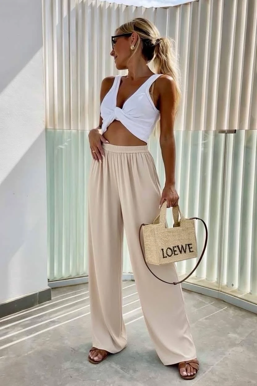 Méret nélküli, gumírozott derekú nadrág.