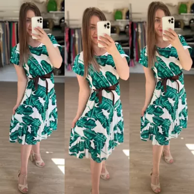 Csinos fodrozott aljú lenge nyári ruha, szalag kötővel a derekán. Hordható alkalmakra is legyen szó esküvőről, ballagásokról, akár keresztelőről, mindenhol megállja a helyét ez a darab.