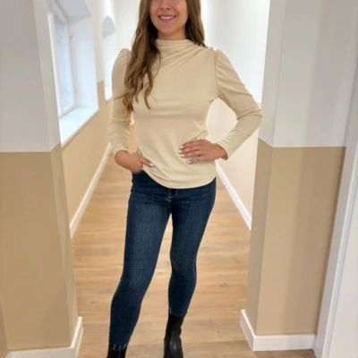 Bordázott anyagának köszönhetően, kényelmes viseletet nyújt, mégis csinos összhatást érhetünk el, egy csinos szoknyával és magassarkúval.