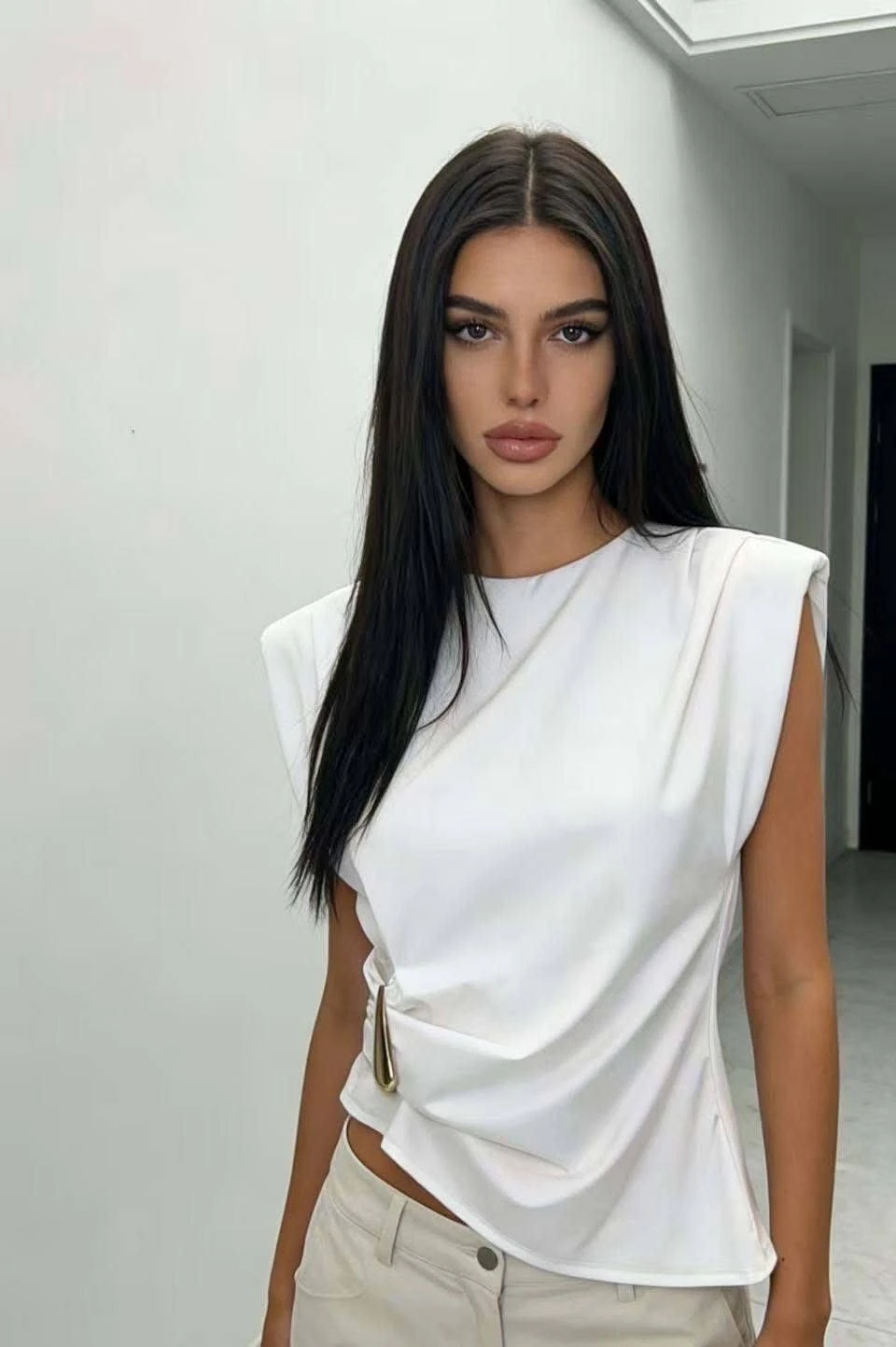 Válltöméses, elegáns ujjatlan felső.