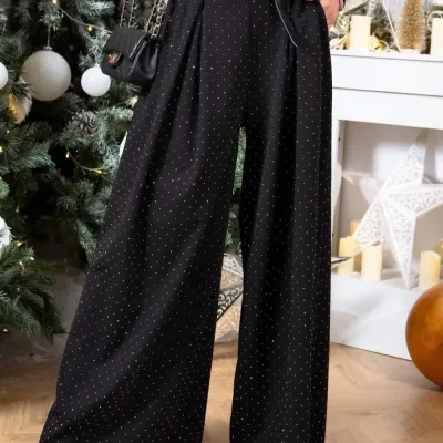 Laza, extra bőszárú naci elegáns strasszokkal díszítve. Dereka gumis, de övvel is méretre szűkíthető. Tündöklő megjelenést biztosít bárkinek akár egy egyszerű basic felsővel viselve is. Az öv a termék tartozéka. S-kisebb L méretre ajánlott.