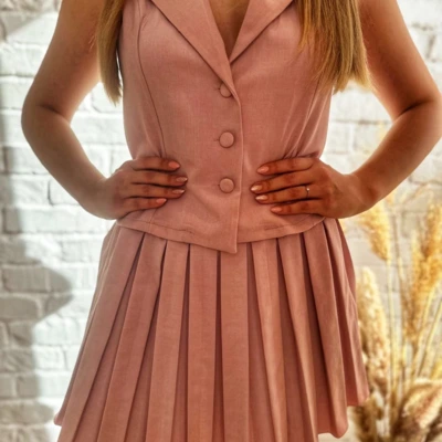 Méretek: Mellény: Hossz: 49 cm Mellbőség: 88 cm Skort: Hossz: 37 cm Derék: 64 cm