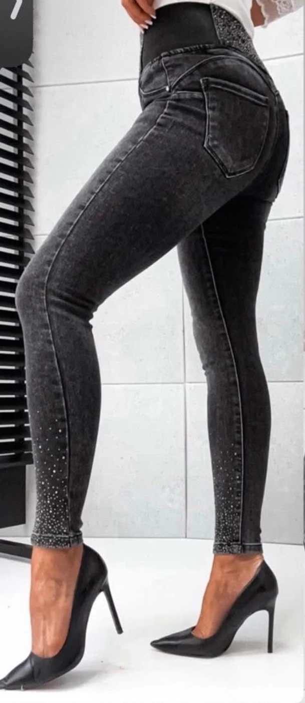 Sötétszürke köves leggings.