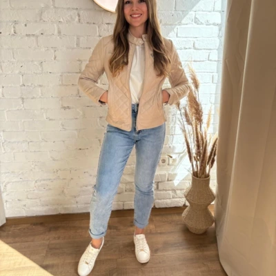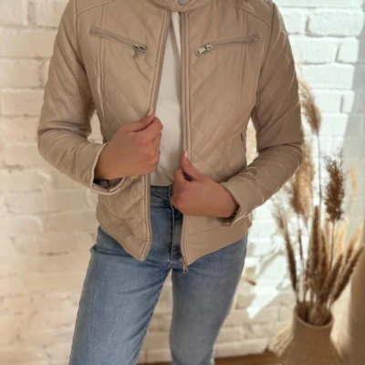 Bézs színű steppelt bőrkabi