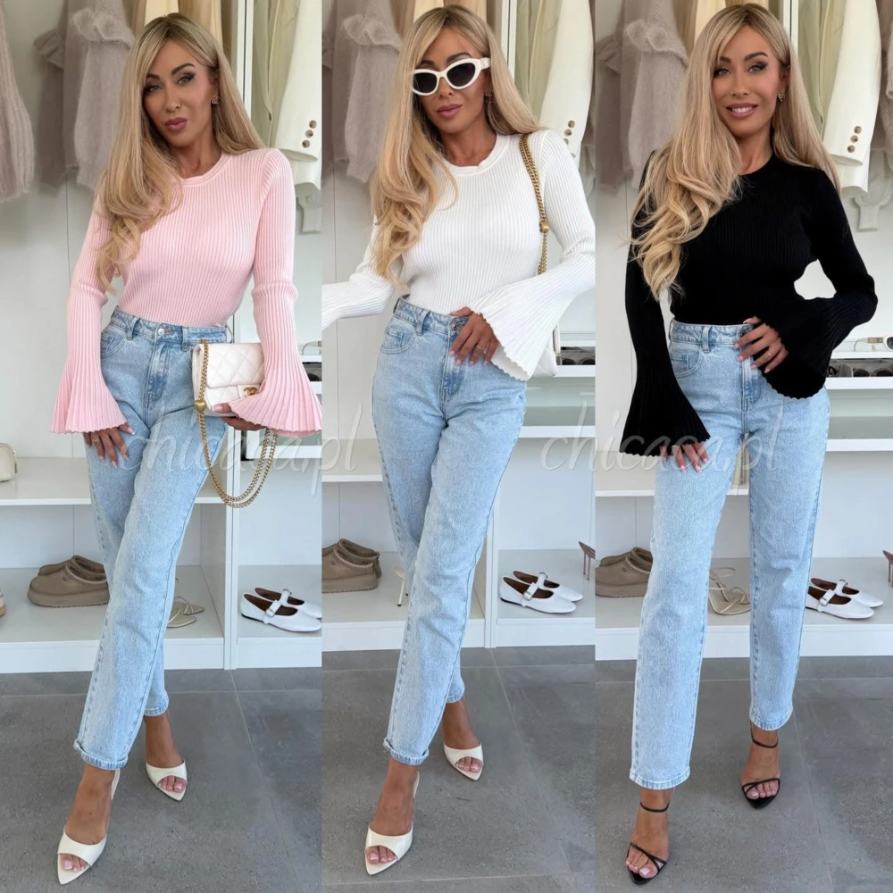 Rugalmas, bordázott anyagú felső, tölcsér ujjal.