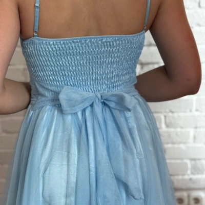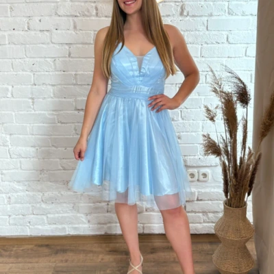 Tüllös, anyagában csillogós különleges alkalmi ruha.