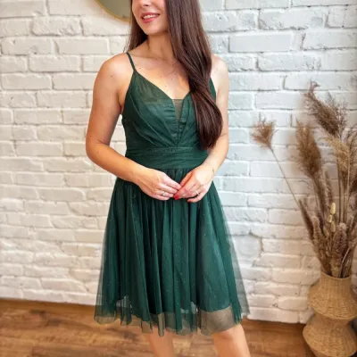 RÓZ tüllös alkalmi ruha smaragdzöld