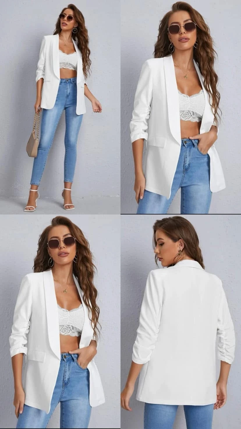 3/4-es, húzott ujjú, laza blézer.