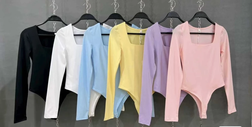 Hosszú ujjú body, szögletes nyakrésszel, egy méretes.