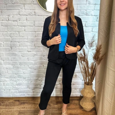 Méretek: Blézer: Hossz: 58 cm Mellbőség: 90 cm Ujjhossz: 60 cm Nadrág: Hossz: 83 cm Derék: 66 cm